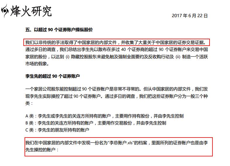 中国家居并不在沽空名单中,即使股价大跌或除牌,烽火研究都不可能在市场上赚钱。它追击中国家居只有三个可能性,一是受人所托,二是扬名立万,三就是前两者都想要。