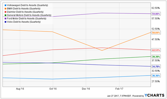 汽车制造初期投入资金大,需要大量负债,一般需要5年的时间来收回成本,而特斯拉当初在过去5年建超级电池工厂的时候就已经消化了这部分投入了。这几个传统制造商目前有大量的债务需要消化,甚至需要借助于汽车租赁。更重要的,其资产负债表上的资产大部分都是针对传统内燃机汽车的设施设备等运营固定资产,媒体报道很多国家甚至开始考虑将来废除内燃机了,从置换成本的角度,他们实际的负债率比表中反映的更高。值得注意的,上表中负债率相对较低的两个公司也是对电动车更加积极的公司。