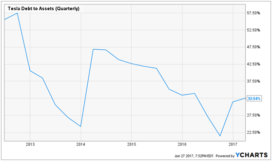 如上图,特斯拉的负债率呈下降趋势,2016年末的上升是因为收购太阳城并表导致的,太阳城有大约30亿债务,几乎没有现金,其债务是以太阳能板为抵押的,并且每月有经验现金流入,所以其实并不影响特斯拉的运营。如果不考虑太阳城,特斯拉的杠杆率在25%左右,比上述其他任何一家传统汽车制造商都低。此外,截止今年一季度,特斯拉还有超过40亿现金,占到公司债务的三分之二。 如此低的杠杆率使公司非常有优势能进行一些更为长远的投资,一般的汽车公司基本办不到。