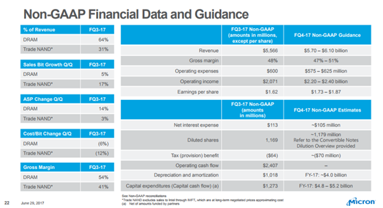 三财季营收增长的主要原因有两个:DRAM涨价14%,NAND销量增长17%;毛利大幅提升归功于存储器涨价和前期成本削减计划。