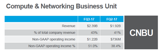 计算与网络业务:营收24亿美元,环比增长24%,占总营收43%; 运营利润率51%,环比上升2个百分点;主机和显卡驱动显存营收有了双位数增长。