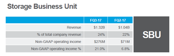 存储业务:营收13.2亿美元,环比增长26%,占总营收24%,运营利润率21%,环比上升14个百分点,SSD增长强劲,特别是来自云服务客户的需求强劲。