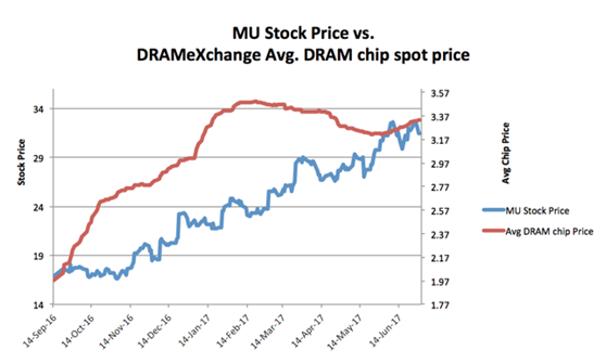 SA上的Electric Phred做了一个很好的图阐述美光股价与DRAM涨价的关系: