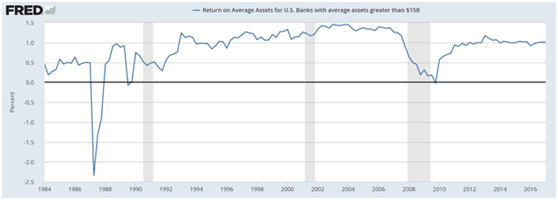重要的推动力就是银行净利润的增长,下图为资产超过150亿美元的银行ROA,可以看出,1993-2007年,银行的ROA基本超过1%,甚至达到1.5%;而在此期间,由于存款业务成本较低,富国银行拥有可观的规模经济效应,因此其ROA达到2%。随着银行业的恢复,最近五年行业ROA已经开始恢复,一旦公司的资产得到实质性地增长,银行的业绩将会得到进一步改善,带给股东丰厚的回报。
