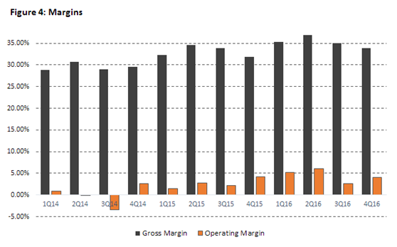 但是传统的估值方法对于科技股可能不合适。亚马逊创造营收没有问题,主要的问题是利润率,尽管公司毛利稳定,成本却一直在上升,运营利润率一直很低。
