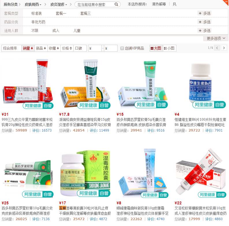 天猫自营药店阿里健康大药房上的数据,在一定程度上能佐证我们的观点:例如,占玉林收入41%的产品湿毒清,在同类产品中按销量排名第6。