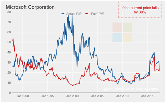 所以如果市场调整,某个投资者一定要在谷歌和微软中选择一只卖掉,该怎么选择呢?
