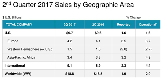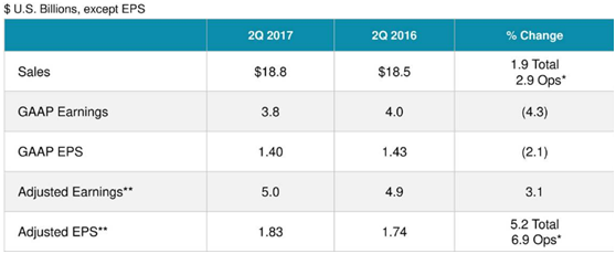 从运营角度上来看,公司全球销售额增长了0.5%,国内销售额下降了1%,但是国际销售额增长了2%,而且这不包括去年的收购影响。考虑到公司的运营开支和销售总额,公司最终净利润为38亿美元,每股净利润为1.4美元,调整后每股净利润为1.83美元,同比增长5.2%,超过此前分析师预计0.03美元。