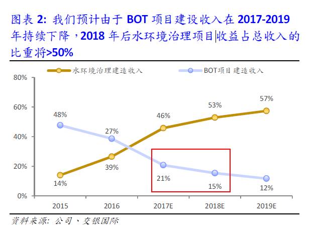 随着北控的收入越来越多来自PPP项目,公司的水环境治理收入将大幅上升,而BOT比例将大幅下降。