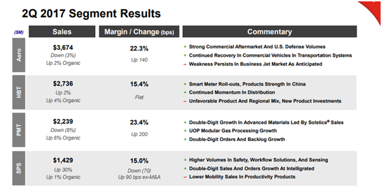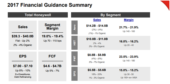 公司CEO表示,将继续推出新产品优化产品结构,同时今年将会花1.15亿美元在业务重组上。已经投资的业务已经开始带来正面的回报,比如特殊材料业务最新完工的设施已经为Solstice产品线带来了两位数的增长;航空服务市场和安防市场的需求依然强劲,从订单和库存的情况看,整个2017年行业都很乐观。