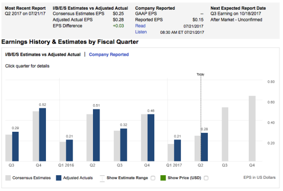 下图是过去八个季度中分析师预期和公司实际表现的对比,从中可以看出,通用二季度业绩再次超出分析师预期。