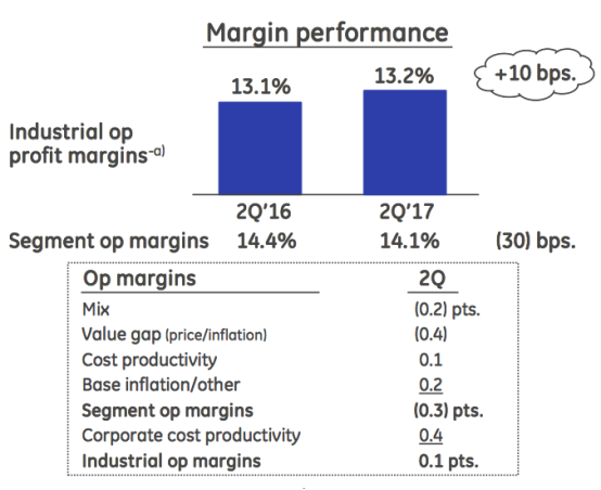 自从通用发布重组计划之后,工业部门利润率就一直处于不稳定的状态。如下图所示,今年二季度,通用的工业利润率增长了0.1%。