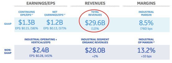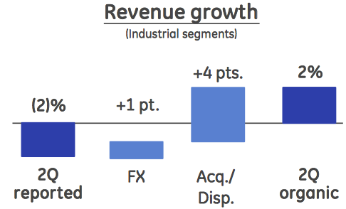 应当注意的是,通用一直在剥离资产,因此仅看公司营收是片面的。由于剥离资产对公司营收影响较大,因此投资者关注公司的有机营收增长情况,而通用二季度的有机营收增速为2%。