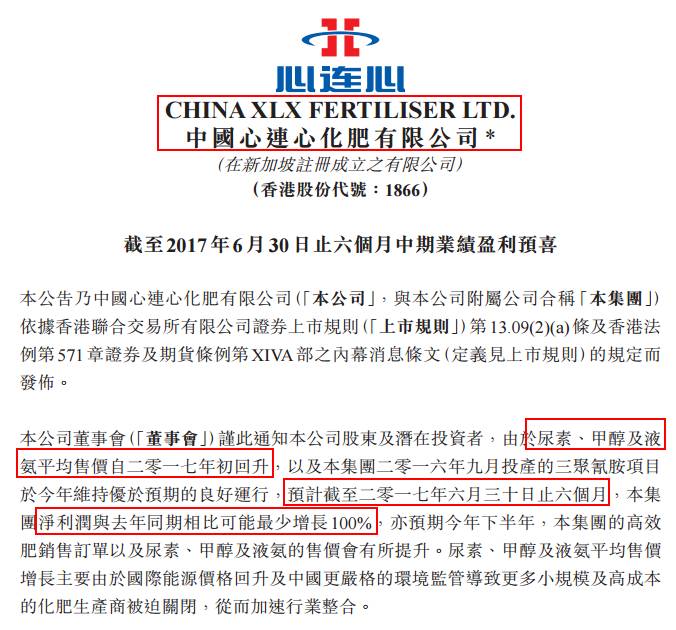 但是,心连心化肥(1866.HK)于6月30日发布了盈喜,直接引爆整个行业行情,带动港股上主要化肥企业如中海石油化学(3983.HK)等的上涨行情,也让大家开始对这个行业重新燃起了“希望之火”。