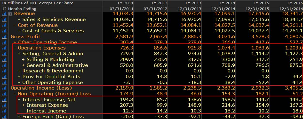 理文在过往的业绩会和会见投资者时错多次提及节用,但1至2点子的节约属大幅跃进,但对整体14.5%的纯利率供献有限。下图是理文过往六年的财务数据: