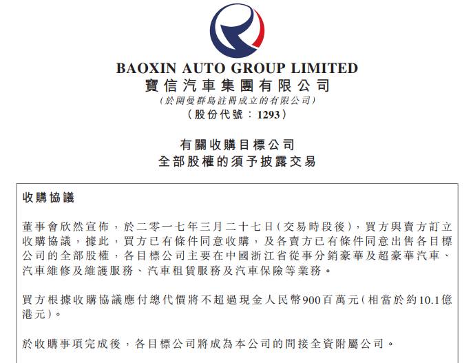 2017年年初,广汇宝信(1293.HK)收购了6家豪华与超豪华4S店。