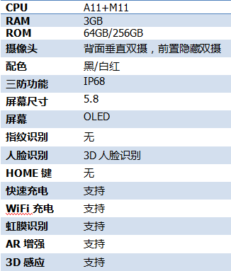 iPhone 8除了处理器、运行内存等核心硬件升级外,存储内存也将会有64GB和256GB两种版本;HOME按键整合到屏幕中去,取消实体按键。