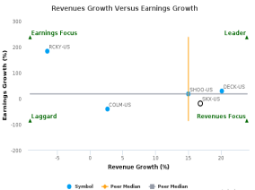 斯凯奇美国公告2017Q2财报后,我们分析了斯凯奇美国和史蒂夫马登有限公司、德克斯户外用品公司、洛基品牌有限公司、哥伦比亚运动服装公司(SHOO-US,DECK-US,RCKY-US和COLM-US)等同行的重要数据。