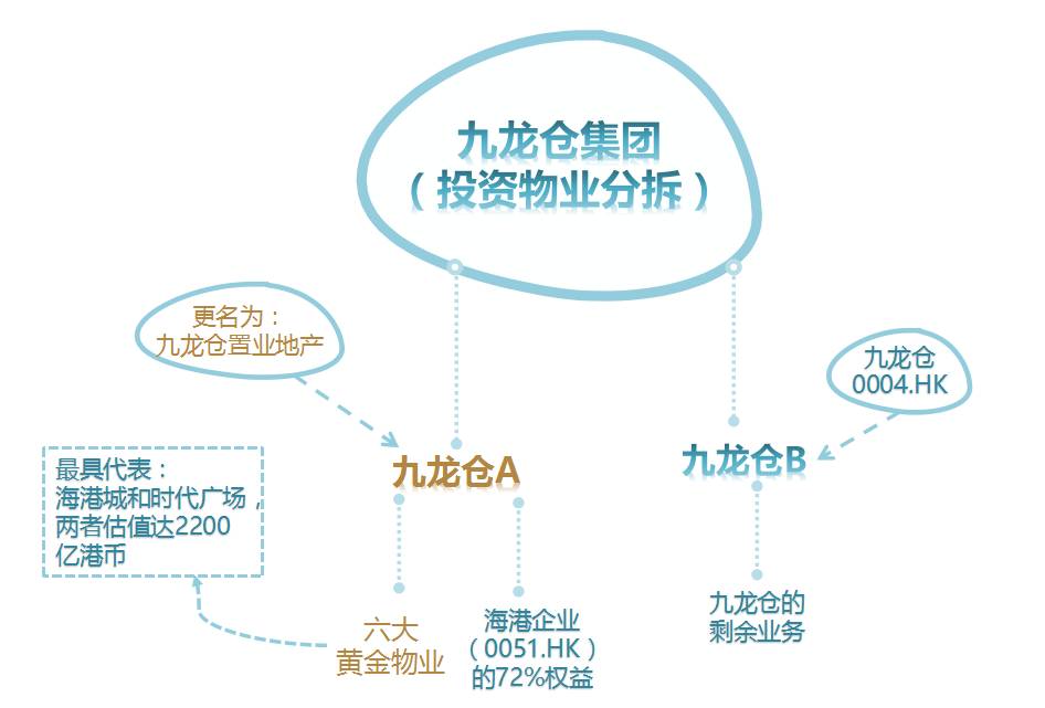简单来说,九龙仓集团被分拆成九龙仓A和九龙仓B,详情看上图。