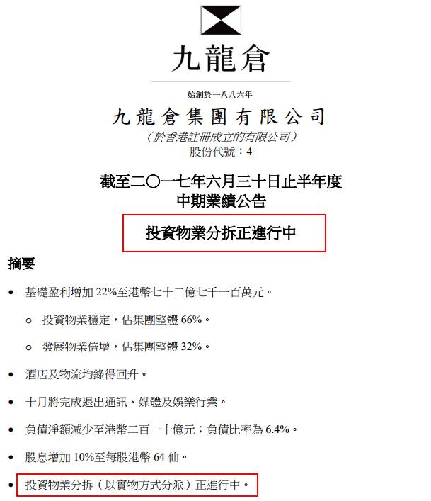 过去,市场屡有传闻被分拆的九龙仓(0004.HK)就是个典型“栗子”。