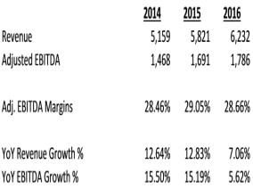 表3显示了,万豪酒店的房间数量翻了一番带来的收入增长和EBITDA的增长。因为万豪在2016年9月23日完成了对喜达屋酒店和度假村的收购,所以17年EBITDA的指引比历史数据要高得多(表4)。这是一项重大收购,对EBITDA的影响显著增加,但它也对公司产生了其他影响。目前债务为84.7亿美元,债务/ EBITDA比率为2.7,这并不可怕,而且似乎是一个明智的资本配置。