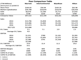 希尔顿的股价相对于其他同行来说,在2018年的EBITDA预测中有17%的涨幅。随着EBITDA利润率保持强劲,增长前景会更加好。