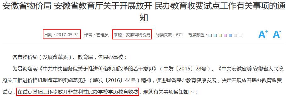 比今年9月1日民促法生效更早的时间,5月安徽省物价局决定放开民办教育收费试点,就是说高校的学费住宿费可以进行自主定价了。