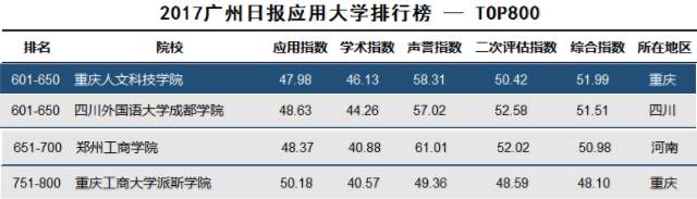 下图节选自权威媒体广州日报发布的2017应用大学排行榜,榜上有887所高校,包括公办普通本科高校以及所有独立学院和民办本科高校,极具代表性。