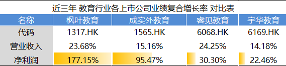 民生教育与它们相比,业绩增长处于极低水平。