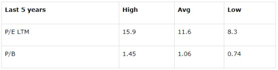 小摩过去十二个月的市盈率和市净率略高,分别为13.6和1.39。不过应该注意的是,去年小摩的账面价值仅仅增加5.4%,而同期内股价大增约37%。去年小摩的市盈率和市净率分别为11.3和1.04,与五年平均水平持平。