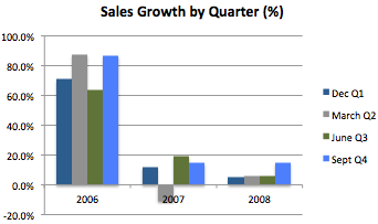 同时,每年美国大约会有130万套新房开工,其中7590亿美元用于非住宅建设,3240亿美元用于修缮,行业增速基本维持在3-4%左右;但是下图表明,2006年的销量比2005年有大幅度的提升,因此,在飓风之后,公司销量不会立即实现,但是由于受灾地区逐步恢复,尤其是美国南部,公司业务将会持续增长改善。