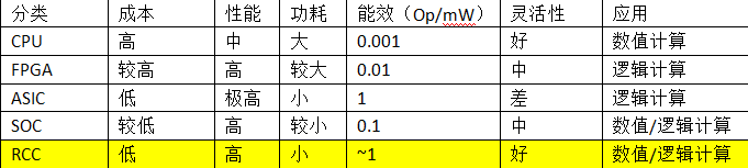 而表格中的RCC则属于可重构计算芯片,支持软硬件编程,硬件随软件变化而变化,是可用于深度学习的软件定义芯片。
