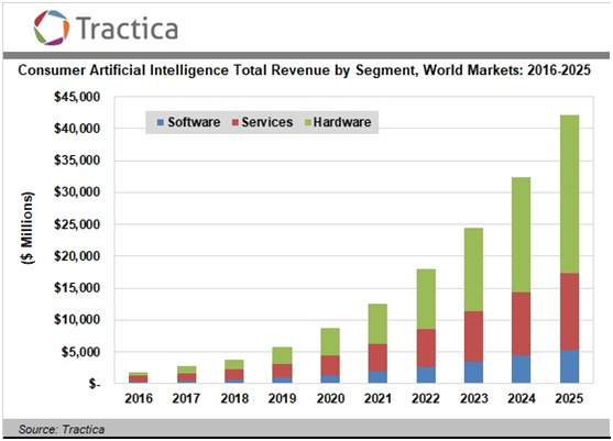 据IDC预测,2017年全球认知和人工智能系统的收入将达到125亿美元,比2016年增长59.3%。并且,这家研究公司表示,随着越来越多的公司加入到这个队伍中,到2020年,公司的复合年均增长率(CAGR)将达到54.4%,届时收入将超过460亿美元。