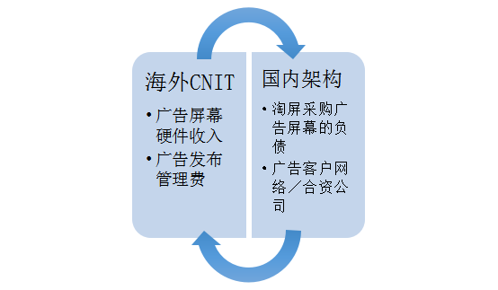 3. 佣金收入:用户通过淘屏APP购买点位屏并使用CNIT的支付系统,平台收取一定比例的抽成;广告主发布电商广告并附二维码,用户扫二维码下单,平台抽取5%-8%的销售佣金。