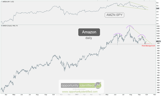 我们可以看到,在接近935美元的位置有非常大的支撑,如果这个点附近不能守住,那我们应该让其他人来接手这个股票了。如果公司能站牢左肩的新高,大约1011美元的位置,那我们就可以指望更高的新高和更高的新低。另外一种情况是股价继续在935美元和1000美元之间波动。