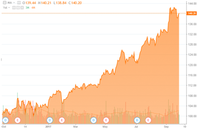 在股票市场里面,总有一些特殊的公司,投资者永远都找不到合适的价格进行交易,因为这种股票,它一直涨,就像万事达一样。