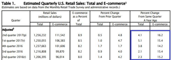 分析师预计贝宝营收增速将为17%,这样的预期是否合理呢,接下来将从行业趋势的角度进行分析。电商业务的增长对贝宝的重要性是不言而喻的,因此参考电商行业的增速对贝宝未来的增长意义重大。