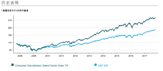 而美国消费紧密跟踪“标普美国可选消费指数(IXY)”,前十大成份股囊括亚马逊、星巴克等知名企业,深交所上市,T+0日内回转交易。 以下为截至2017年9月30日该指数表现情况。