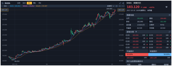 公司在今年股价已经翻了一倍,随着公司云业务营收能力的提升,以及蚂蚁金服和菜鸟网络估值的增加,都是促使公司股价屡创新高的原因。