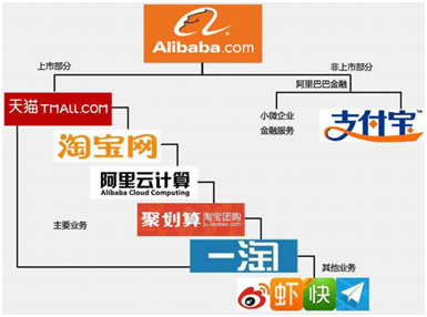 阿里从当初简单的电商平台,经历不断的架构组织调整发展为拥有:淘宝网、天猫、聚划算、一淘、全球速卖通、阿里国际交易市场、1688、阿里妈妈、阿里云、蚂蚁金服、菜鸟网络等多个事业部,各事业部门在商业经营、生态系统上相互支援,协同效应显著。