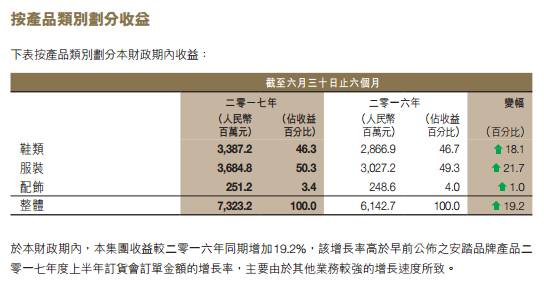 这里特别要说一下的是安踏体育,作为国产体育用品新龙头,从上半年公布的数据,安踏的整体销售更上升了19.2%。它股价2017年到现在上升了约40%,好于行业平均的表现大家是有目共睹的。