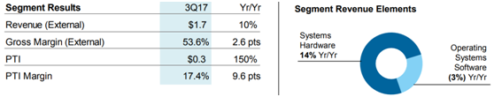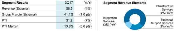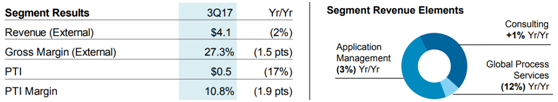 第三季度,公司调整后每股盈利3.30美元;虽然公司一度接近终结此前营收连续21个季度的下滑趋势,但到最后未能实现,营收为191.5亿美元,连续22个季度同比下降,然而超出分析师此前平均预期的186亿美元。