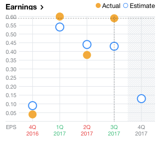 稀释后的每股收益从2016财年第三季度的0.42美元上升至0.59美元,也超过了此前0.15美元的指引。毛利润从4.3亿美元增加到5.2亿美元,毛利率是本次财报最大的惊喜,从2016财年第三季度的45.6%提高到47%。管理层将其归因于国际销售业务的强劲表现,加上本季度的外汇收益。
