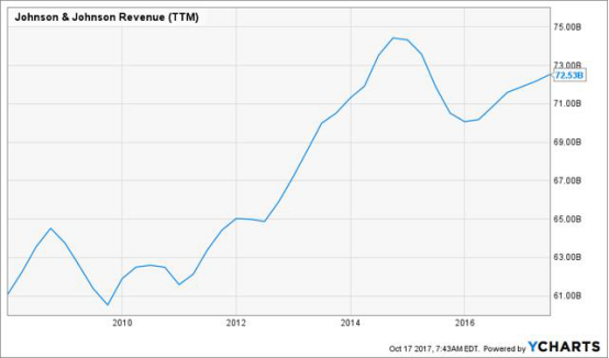 强生公司第三季度每股收益为1.90美元,比上年同期增长13%。除此之外,公司的营业收入比2016年第三季度增长了10%,总计197亿美元,超过一致预期2%。但医疗保健和医疗器械业务的前景仍然不容乐观,是财报中最不尽人意之处。