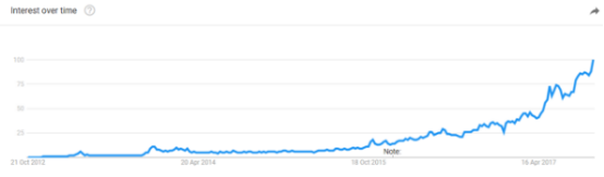 加密数字货币市场的狂热使其背后的区块链技术得到更多关注。区块链技术于2008年推出,是比特币的基础技术。很多人将投资比特币作为投资区块链技术的一种方式,推动比特币价格在去年暴涨超过750%。