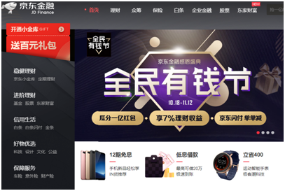 京东金融建立九大业务板块,分别是供应链金融、消费金融、众筹、财富管理、支付、保险、证券、金融科技和农村金融,涵盖目前理财加消费的金融产品。