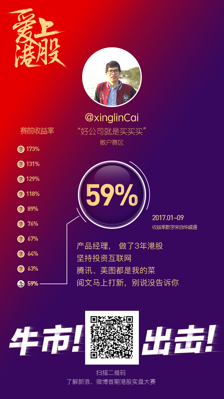 2017年,香港市场在经历了长期低估后,终于走出了一场波澜壮阔的牛市,领涨全球。值此之际,华盛联合微博,举办首届港股实盘大赛,报名人数已逾万人。