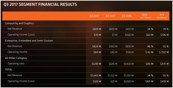 Q3 GPU是创纪录的一个季度,销售增长强劲,但CPU业务也不错,R5和R7抢占了很大一部分市场空间,未来持续乐观。