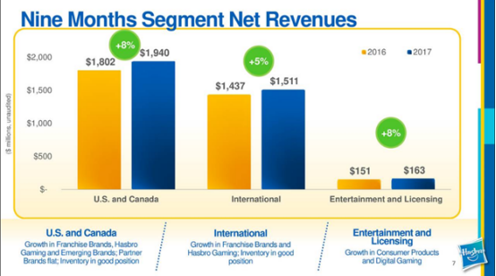 孩之宝的收入继续呈现强劲增长。