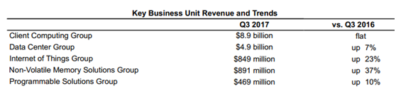 大数据,物联网和存储器业务都创历史记录,可编程业务在自动驾驶和云服务上正在赢取更多的客户。